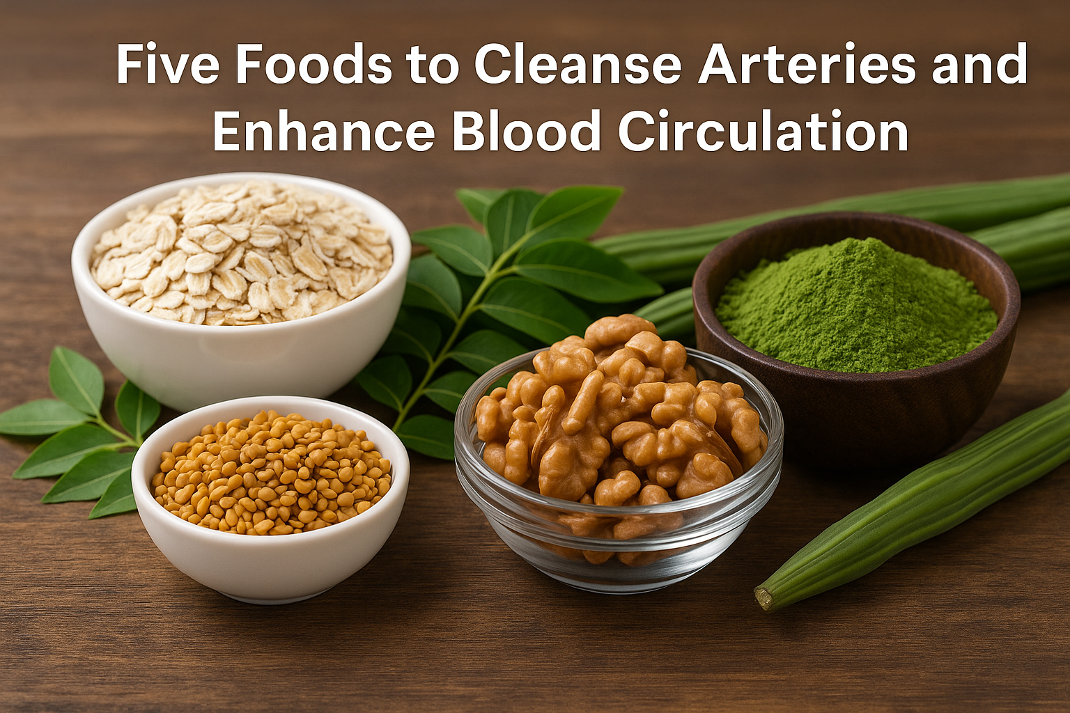 By adding these five foods — oats, moringa, walnuts, fenugreek, and curry leaves — into your meals, you’re not just eating for taste. You’re investing in your arteries, your heart, and your future health.