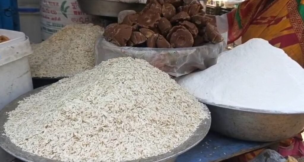 With Makar Sankranti to be celebrated tomorrow, markets are witnessing a festive display as traders have set up stalls selling traditional items such as tillai (sesame sweets), jaggery, batasha, rice flour, kadma and other essentials associated with the harvest festival. These items are in high demand during the festival, which marks the transition of the Sun into the zodiac sign of Capricorn.However, despite the seasonal buzz and increased footfall, traders say business is not as brisk as in previous years. Many shopkeepers expressed concern over lower sales, attributing the slowdown to rising prices of raw materials and reduced purchasing power among consumers. Buyers, they said, are opting for smaller quantities and cutting back on non-essential purchases.While the festive spirit remains visible across the markets, traders are hopeful that last-minute shopping on the eve of Makar Sankranti may bring some relief and improve overall sales.