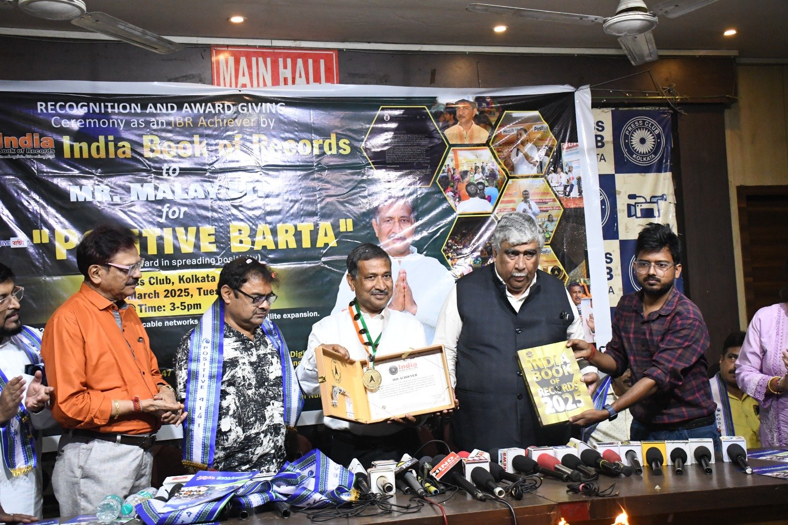 Kolkata witnessed a celebration of positivity as Malay Pit, the founder of Positive Barta, was honored with the “IBR Achiever” title by the India Book of Records (IBR) at a ceremony held at the Press Club, Kolkata. This recognition highlights Pit’s significant contributions to media and society through his dedication to spreading optimistic news.