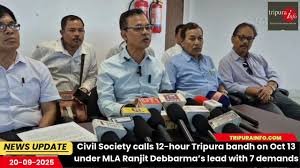 Tripura’s statewide bandh, which was originally scheduled for October 13, has been postponed to October 23 for 24 hours, as announced by Tipra Motha Party MLA Ranjit Debbarma on October 10. This decision was made in consideration of the upcoming Diwali festival, after numerous residents across Tripura requested the delay to avoid disruption during the festive period.