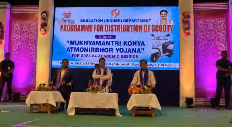 In a significant move to promote women’s empowerment and self-reliance, Tripura Chief Minister Dr. Manik Saha handed over 140 scooters to meritorious female students under the ‘Mukhyamantri Kanya Atmanirbhar Yojana’ (MKAY). The distribution event took place at the Rabindra Shatabarshiki Bhavan in Agartala, where students from various parts of the state received the scooters directly from the Chief Minister.