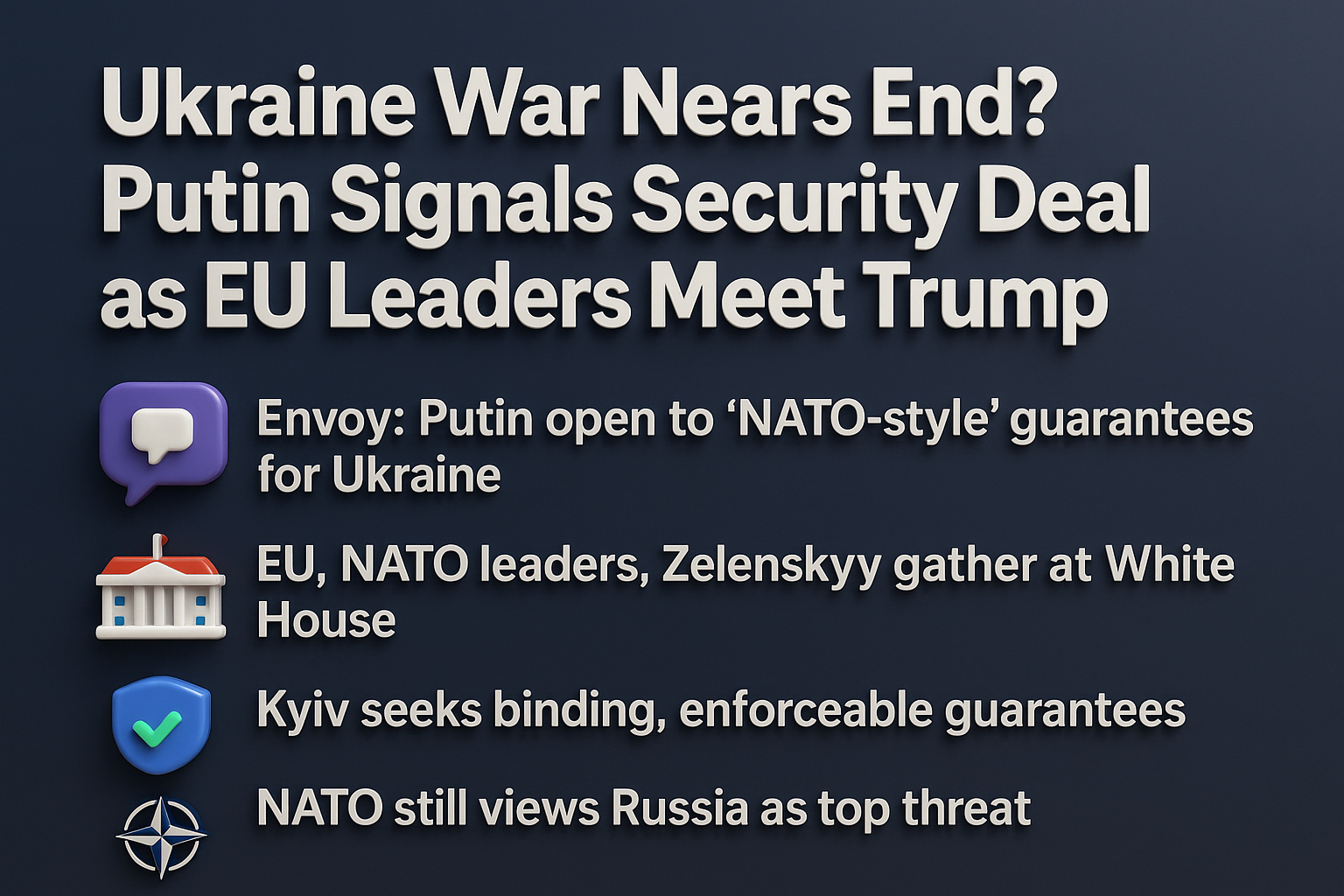 Putin signals openness to NATO-style guarantees for Ukraine. EU and NATO leaders join Zelenskyy at White House for high-stakes talks with Trump.
