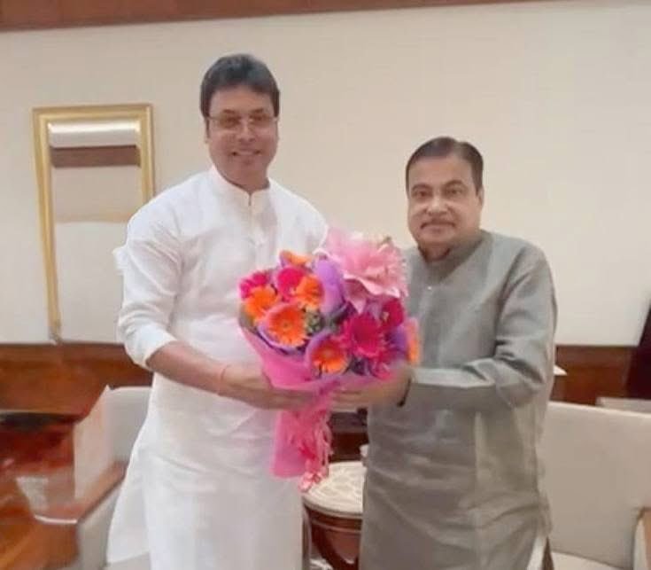 West Tripura MP and former Chief Minister Biplab Kumar Deb met with Union Minister for Road Transport and Highways Nitin Gadkari in New Delhi on Wednesday to discuss the progress of key infrastructure projects in Tripura and to strategize for upcoming initiatives. The meeting was crucial as both leaders addressed the challenges posed by heavy rainfall in the state, which often affects the quality and durability of roads.