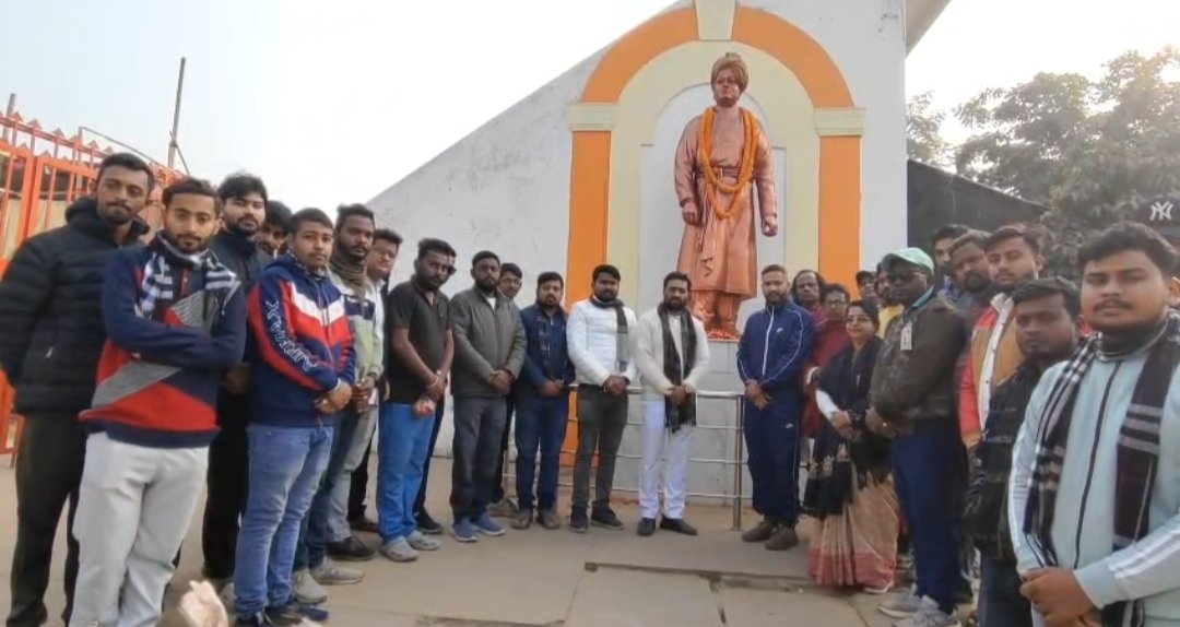 Marking the 164th birth anniversary of Swami Vivekananda, the No. 9 Banamalipur Yuva Morcha organised a tribute programme at Vivekananda Maidan in Agartala on Monday. Members of the organisation offered floral tributes at the statue of Swami Vivekananda, recalling his teachings and ideals.The programme was attended by No. 9 Banamalipur Mandal President Arindam Deb and State Yuva Morcha Vice-President Rana Ghosh, along with several party workers. The leaders highlighted Swami Vivekananda’s message of youth empowerment, national awakening, and service to society, and urged the younger generation to follow his path of dedication and discipline.